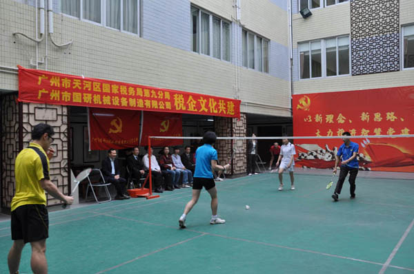 天河區(qū)國稅局紀(jì)檢組長(zhǎng)黃捷洪、九分局葉潔麗局長(zhǎng)、我司黨支部書記、副總經(jīng)理王聲躍等領(lǐng)導(dǎo),及稅企雙方共三十多人參加了此次活動(dòng)?;顒?dòng)內(nèi)容包括重溫入黨誓詞、乒乓球和羽毛球友誼賽等。自今年三月“稅企文化共建”活動(dòng)開展以來,我司和區(qū)國稅局以文化共建為平臺(tái),舉行了一系列互動(dòng)活動(dòng),形成了以共建促和諧,以共建促發(fā)展,以共建促共贏的良好局面。