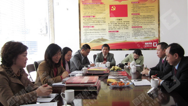 區(qū)委常委、統(tǒng)戰(zhàn)部長(zhǎng)陳曉暉(左二)在聽(tīng)取我公司領(lǐng)導(dǎo)的黨建工作匯報(bào)